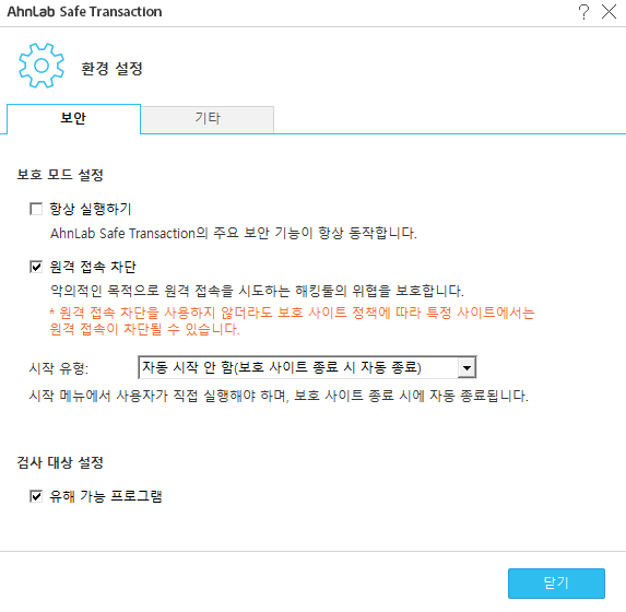 AhnLab Safe 화면 (확대하여 보려면 클릭)
