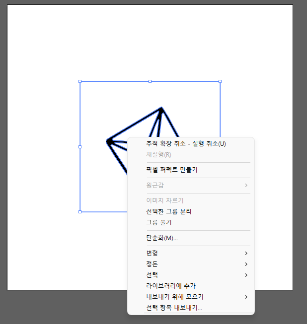 그러면 아래와 같이 벡터화가 진행된 아이콘이 뒤 하얀 배경과 함께 그룹이 되어 선택되어 있다. 그 부분을 오른쪽 클릭하고 Ungroup을 선택해 그룹을 해제한다.